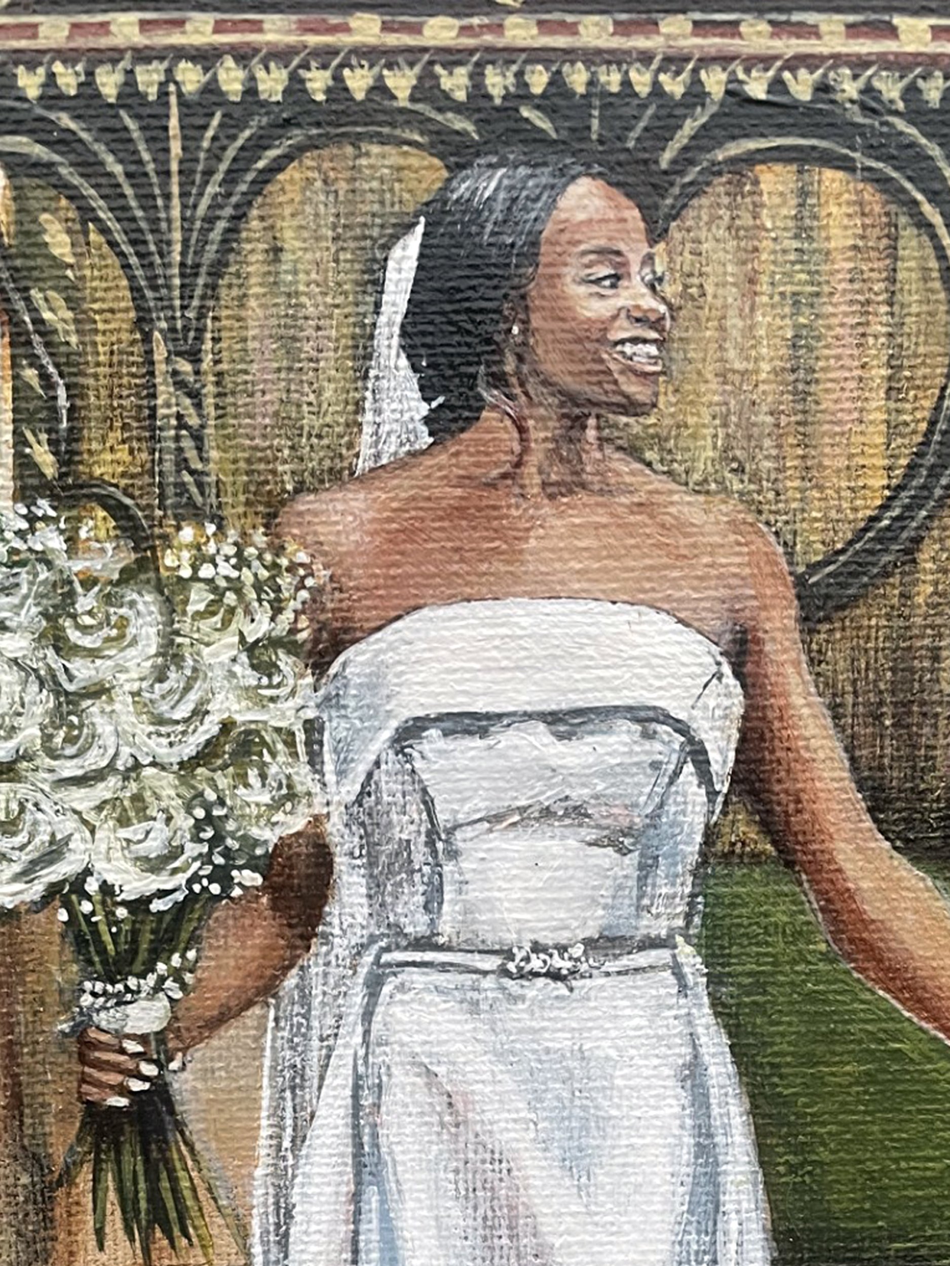 I was invited to paint as a wedding gift from a very generous bridesmaid and dear friend of the couple. After the ceremony we all hopped on their vintage Routemaster buses to the Royal Exchange to continue the celebrations at the Banking Hall, where I continued to paint through the cocktail hour and evening reception.